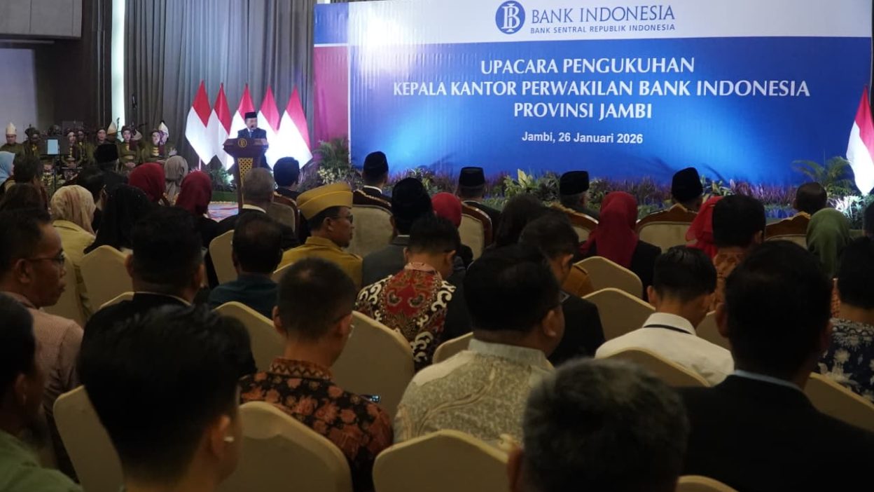 Duaarahnews.com, Jambi – Gubernur Jambi Dr. H. Al Haris, S.Sos, MH mengemukakan, Pemerintah Provinsi Jambi berkomitmen bersama Bank Indonesia untuk terus mengendalikan inflasi melalui Tim Pengendalian Inflasi Daerah (TPID), termasuk menghadirkan toko inflasi di sejumlah pasar guna menjaga stabilitas harga bahan pokok, diberbagai daerah di Provinsi Jambi. Hal tersebut dikemukakannya saat menghadiri Pengukuhan Kepala Kantor Perwakilan Bank Indonesia Jambi, bertempat di Swiss-Belhotel Jambi, Senin (26/01/2026) pagi.